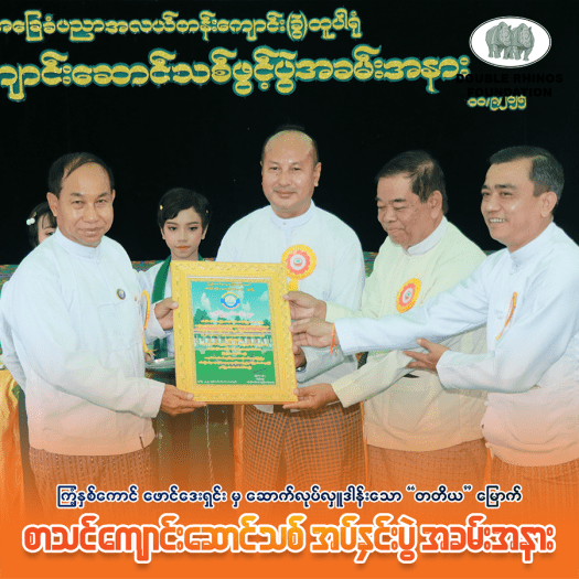 အင်အားကြီး ငလျင်ဒဏ်ကြောင့် ပြိုကျပျက်စီးသွားသော စာသင်ကျောင်းများအား ပြန်လည်တည်ဆောက်သည့် နေရာတွင် အသုံးပြုရန်အတွက် ကြံ့နှစ်ကောင်ဖောင်ဒေးရှင်းမှ ငွေကျပ် (သိန်းနှစ်သောင်း) လှူဒါန်းသွားမည်ဖြစ်ပါသည်